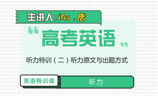 本节带领大家研究高考听力原文,以及出题方式。教大家熟悉听力材料及设问方式,了解材料的难度和涉及的领域,以抓取录音中的重点词句,学会审题、斟酌选项。
